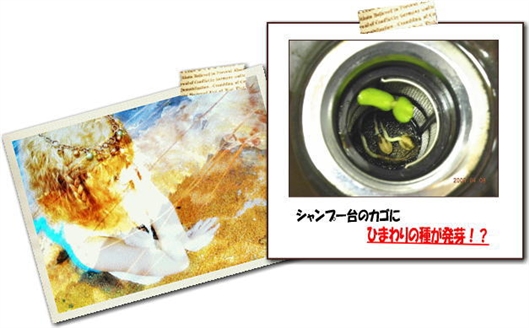ヒマワリの種がシャンプー台のカゴの中に偶然入り、発芽しました!!